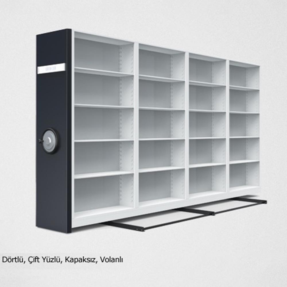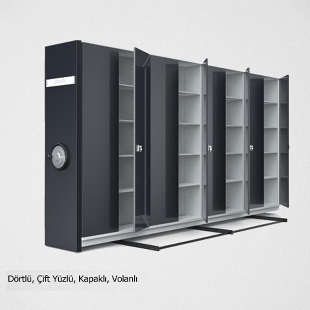 Sistem tekerlekler vasıtası ile özel olarak hazırlanmış raylar üstünde hareket ederek birbirinden açılan ve birbirinden yanaşan seri dolaplardan oluşmaktadır. Dolapların hareketi her dolap sırasının ortasında bulunan direksiyon kolunun çevirerek veya dolap üzerindeki kolu çekerek sağlanır. Hareketli arşiv sistemi sıra ve dizi olarak iki şekilde sıralanır.